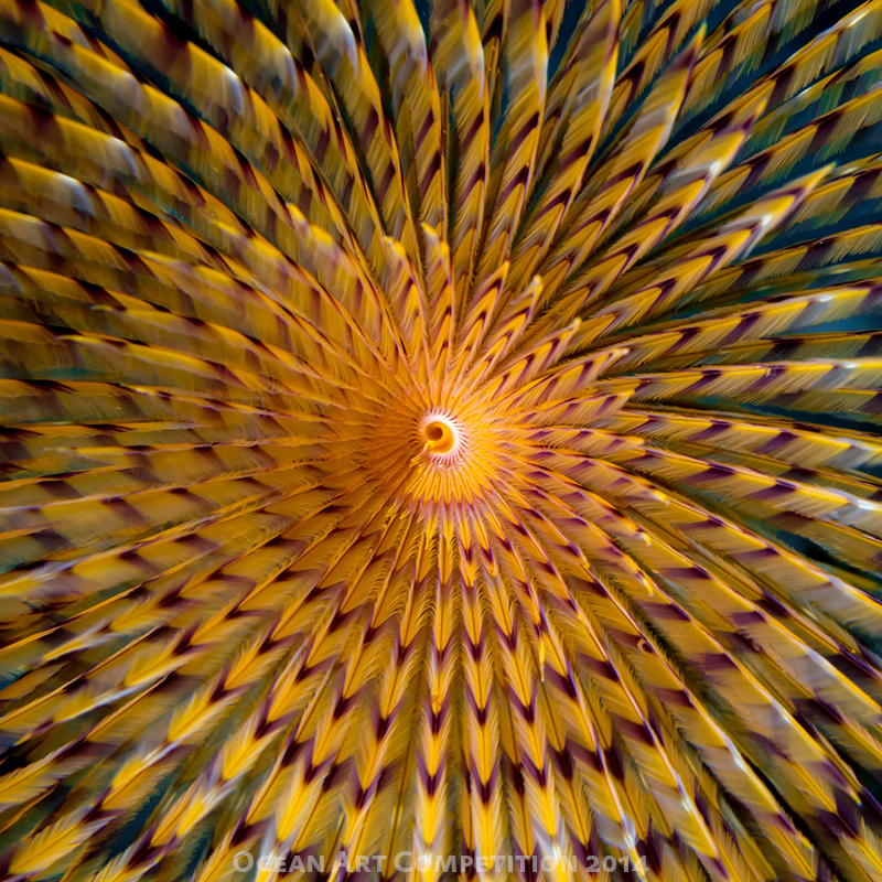 The story:  A wide-open spirograph (Sabella spallanzanii) is an animal of incredible beauty, coming in a variety of shades of colours, and allowing the photographer to play with its colours and shapes. In this case, I tried to highlight the inner spiral, the spiral being one of the most recurrent and photogenic shapes in nature.