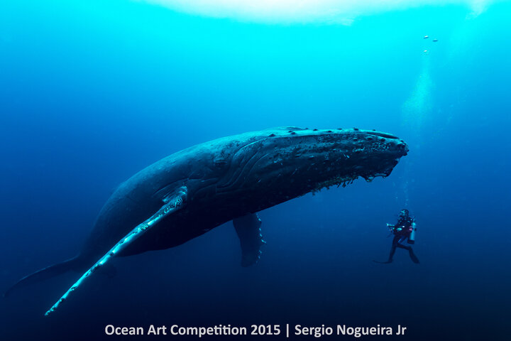 Female humpback, her two years old calf and an escort were unmoving, so calm and quiet at a depth of about 42 feet. After a while the whales went to surface and two Orcas started to hunt the calf. One of the orcas distracted both adult whales by swimming in front of them, while the other one attacked from behind, grabbing the calf by its fin and quickly dragging it away from the adult humpbacks. It was a really quick and perfectly orchestrated attack. The orcas were swimming away from Roca Partida, dragging the dead calf. The humpbacks lost track of the orcas and stayed at Roca Partida. They were so nervous, like two buses out of control. It was the most dangerous part, as they went by pretty close to us. The dive was aborted and we returned to the boat – terrified! The captain cancelled the next dive for security reason. We resumed diving on the afternoon, but we didn’t find the whales or the orcas. Next morning, on the same spot, we found the whales: mom and escort. Once again they were so calm and didn’t care about us. This was when I took the picture: Mommy without her calf and my friend Gustavo Verzoni. There, we are the guests, just to watching, nothing more.