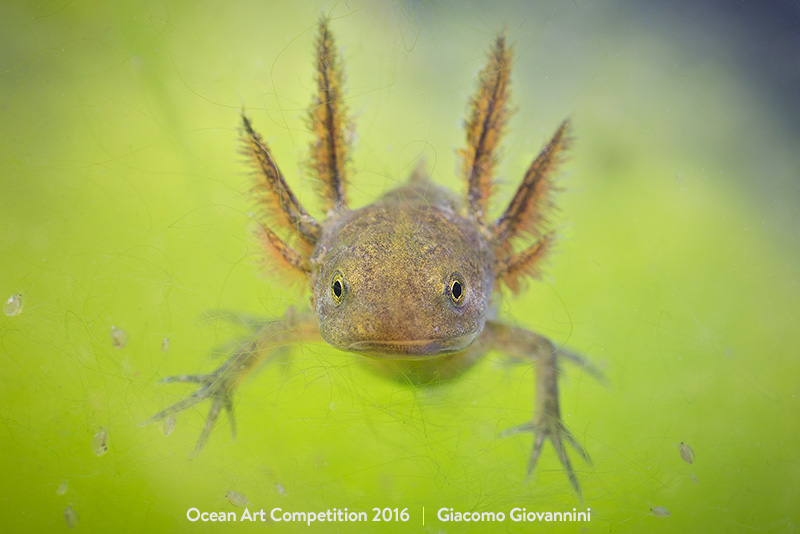 The story: This shot has been taken in an abandoned swimming pool and talk about of a “special” animal, the tritus (Lissotriton vulgaris), in fact his first part of life, during his neotenic phase, he keeps an charming external crested gill for breathing, entirely spent into the water; until achievement of sexual maturity when (should) happen a metamorphosis, where he lost extranel gill and breath with “new” developed lungs.