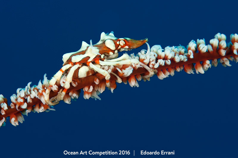 When my guide indicated me this wire coral crab, I was immediately surprised by its perfect mimetism and by the polyps which had grown up on its carapace.