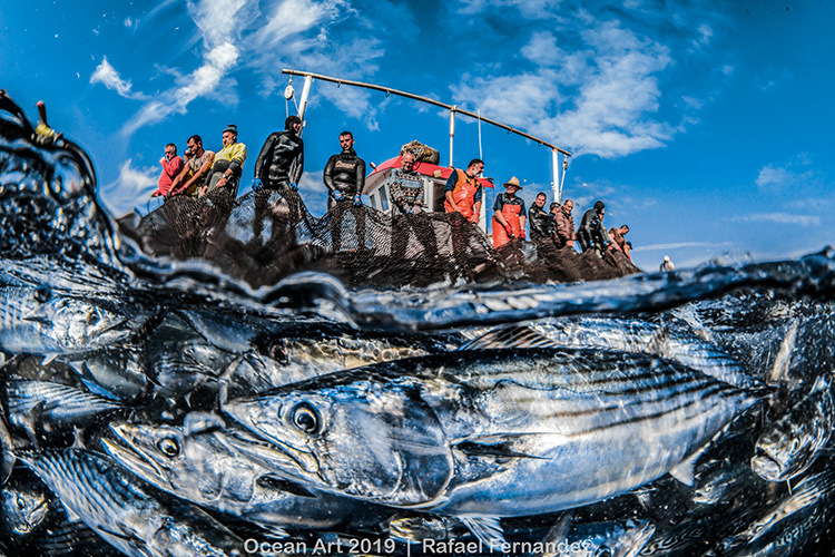 In the upper half of the picture you can see all fishermen rising the nets and in the part below you can see those fishes. The fishes that are not edible are thrown away by the commercial divers in order to avoid their death, this happens with fishes such as the sun fish which are counted by hundreds every week.