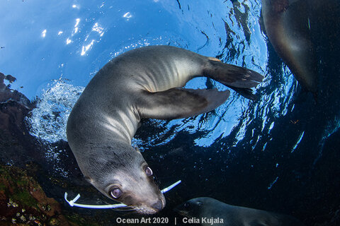 The Story: California sea lions are very curious and playful and everything in their environment is a potential toy. When I was diving in the Coronado Islands this fall photographing their development, it was not uncommon to observe them playing with rocks, sticks and seaweed. Tragically, it is becoming much more common to see them playing with another type of toy. Human garbage is entering the ocean and arriving at their uninhabited island on ocean currents. One day this sea lion pup was playing with a large plastic tie. I was able to grab this “toy” when the opportunity arose and remove it from the water. Unfortunately, much more garbage remains in the oceans all over the world. It is extremely sad to see the far-reaching effects of our waste and is a reminder that we must do better.
