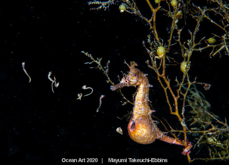 The Story: The Minamata sea was poisoned by severe mercury from a factory during 1950’s to 1960’s. People used to call it the death sea and no one was allowed to go to fishing until the 1990’s. But the Minamata sea is rehabilitated now and you can find new specimens of seahorse called Himetatsu. The Minamata sea is sanctuary for this seahorses now. This Japanese seahorse was found as a new species ‘Hippocampus ahem’ in 2017. A male seahorse will keep eggs in his pouch for 3-4 weeks after he received the eggs from female. After midnight, the male seahorse will push all babies from his pouch when the time has come for the babies to hatch. A couple of seahorses will stay together during hatching season at all times between April to August. They will repeat egg passing behavior 4-5 times in a season. It was incredible moment when the male seahorse hatches all the babies from his pouch. I was diving from midnight until 6AM to shoot this moment for weeks and weeks.