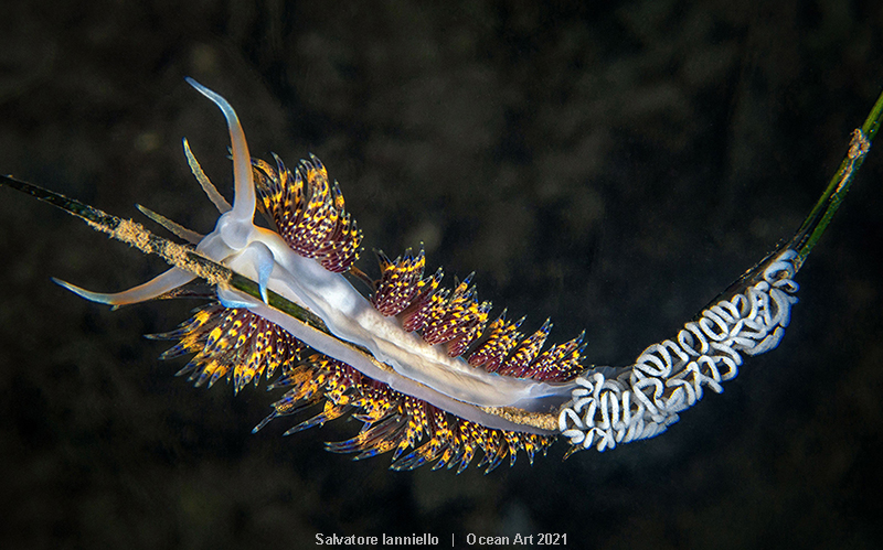 The Story: A Godiva quadricolor spawning, seen from below. This photo was taken in the Mediterranean in a lagoon of the Gulf of Naples, Italy.