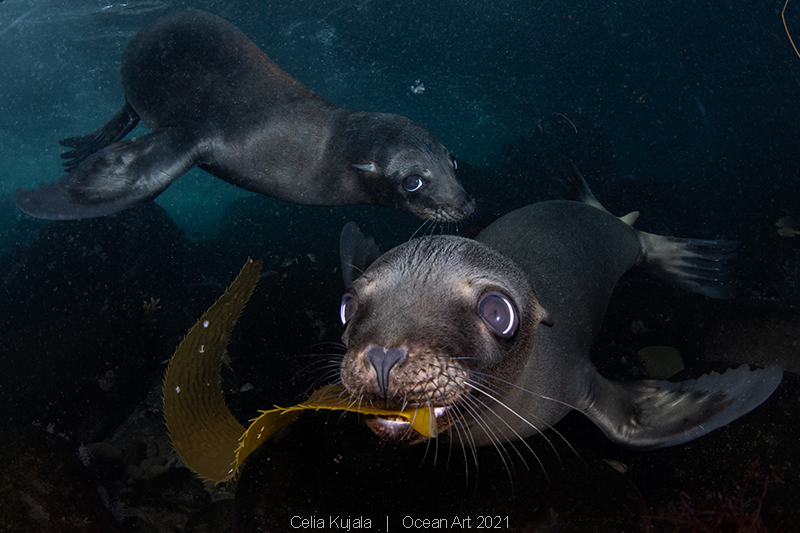 The Story: During the fall of 2020, I spent many hours scuba diving with California sea lion pups in the Coronado Islands, Baja California, Mexico to observe their development. As they got older they became more and more curious and started playing with everything they could find in their environment. One day in October 2020, I was diving with them after some rough weather had brought in a bunch of debris to their home. This meant even more “toys” for them to play with. They especially seemed to enjoy playing with the kelp fronds that had washed into the area. They played with them in such a way it reminded me of rhythmic gymnasts with their ribbons.