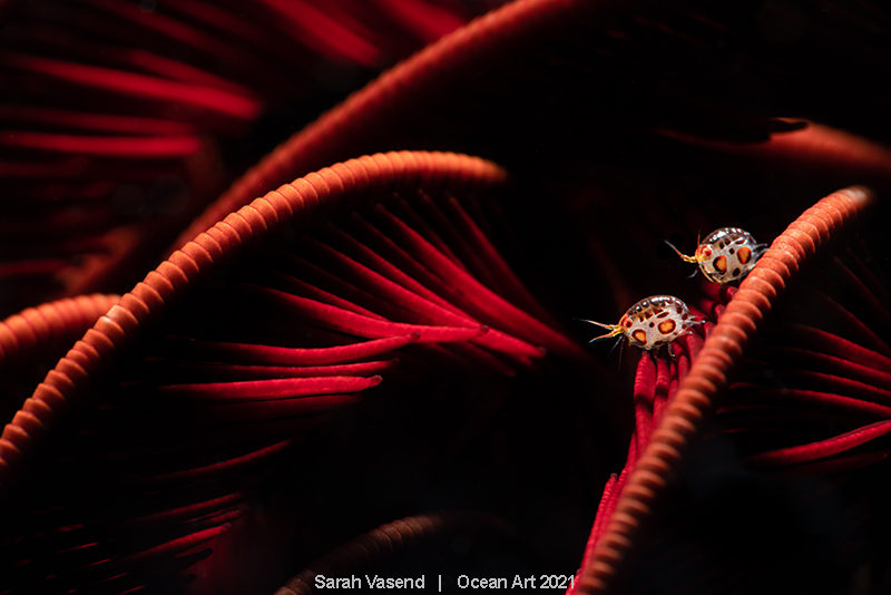 The Subject: Ladybug Amphipod on a red crinoid