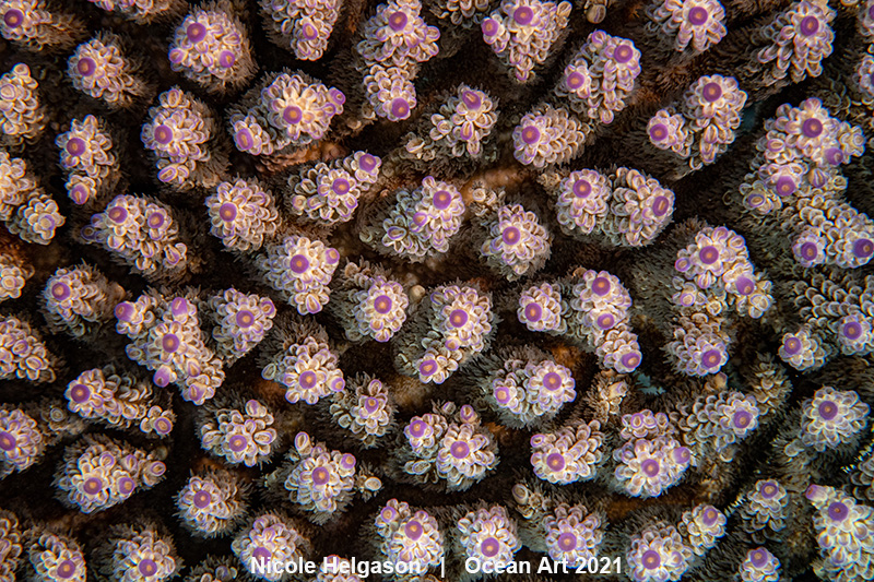 The Story: I arrived a week earlier in the Solomon Islands on a mission to photograph healthy coral colonies. We set out for the day from Tavanipupu Island Resort to a place they can sand island. The island is just that, a mound of sand surrounded by coral. Much of the coral on one side of the island had already been killed by the shifting sands while the far side of the island was alive and vibrant with healthy coral colonies. As I was swimming through the shallows I spotted this plating Acropora tenuis coral which was easily 3 feet across. The top of the coral was incredibly flat as if the branch tips might touch the sky at low tide. I knew this would be a fantastic subject for the top-down coral shot I’ve always dreamed of. I snapped a few shots from different angles of the coral and then floated above waiting for the perfect light. All it took was one shot and I knew I had something special. This image has always been one of my all-time favorite photographs from the trip as the little tentacles on the side of the Acropora branches invite you to look deeper into the coral.
