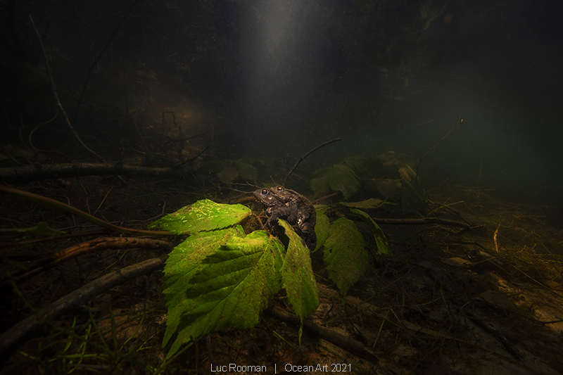 The Story: The toads mate in early spring in March at a water temperature of 8°C. I’ve been tracking this behavior for several years and on a cold sunny March day, some rays of the sun fell on the toads, putting them right in the spotlight. This photo was taken while snorkeling at a depth of 1 m