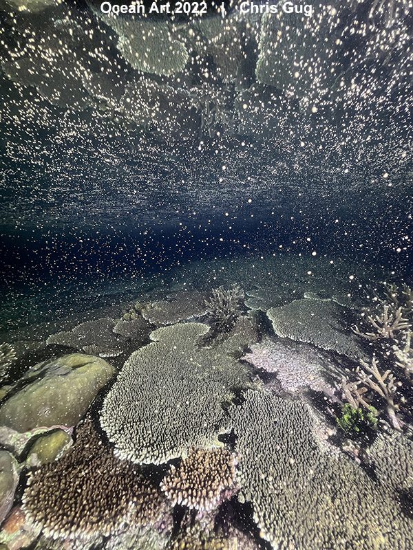 The Story: The dive manager/naturalist Sabine at Misool gave me an insider’s tip the night before this photo was taken. While it’s not well-documented or studied, she had witnessed a coral spawn event on this moon cycle in past years, and believed there was a chance that corals might spawn within the next day or three. So my wife & I sat out on the dock all night, skipping dinner, a presentation, and some sleep. But finally, a very fishy stanky smell filled the calm air. Looking down into the water below with the phone flashlight showed egg packets beginning to pop up to the surface. I slipped off the dock to document the event, but not knowing if we would have seconds, minutes, or hours, the phone that was already in my hand was the best camera for the job, which I feared might be over before I could even get in. But it did go on for quite a while – more than 30 minutes on two consecutive nights. The gametes formed a slick on the calm surface, and the smell was like opening unrefrigerated week-old fishy cheese, which seemed to cling to my body (and my wife’s long, curly hair) for the next day. But what an incredible experience it was, watching the coral do it’s thing, and the bounty that it provided the rest of the reef’s inhabitants on that night from crabs filtering as much of a meal as possible, up to the black-tip sharks rapidly cruising through trying to take advantage of a smaller fish busy gorging themselves – I’ll gladly get covered in that coral stank any time!