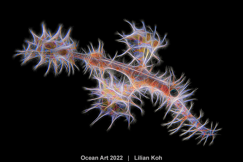 The Story: Whenever I see a ghost pipefish, I can’t help letting my imagination runs wild. With the help of a Fractal software I am able to transform it into a close resemblance of a dandelion, which shows it’s fragility and resilience. Ghost pipefishes are masters in the art of camouflage, they can easily blend in with the natural background (normally crinoids or gorgonians). Managed to capture this image by using snooting technique enables me to separate the subject from its environment.
