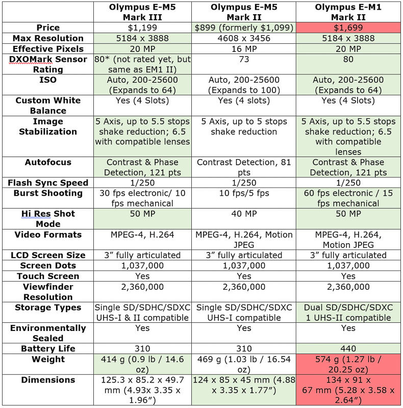 OM-D E-M5 Mark III Specifications | Olympus E-M5 III vs E-M5 II and E-M1 II