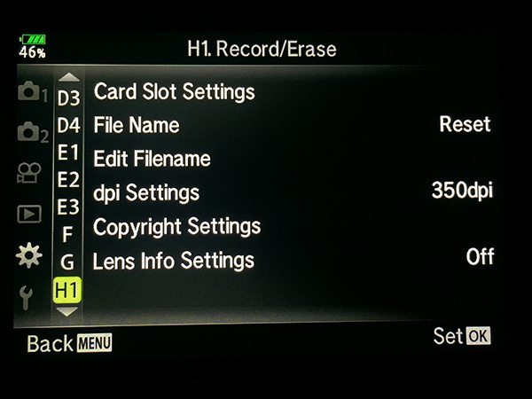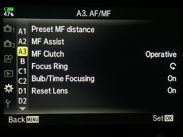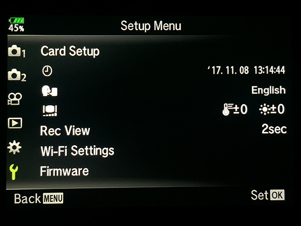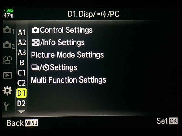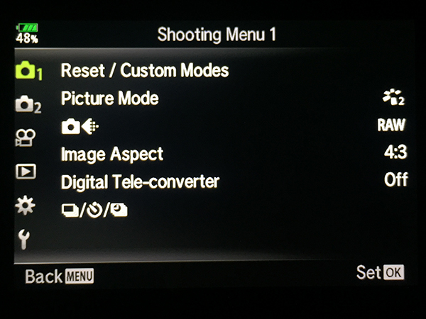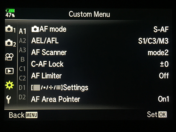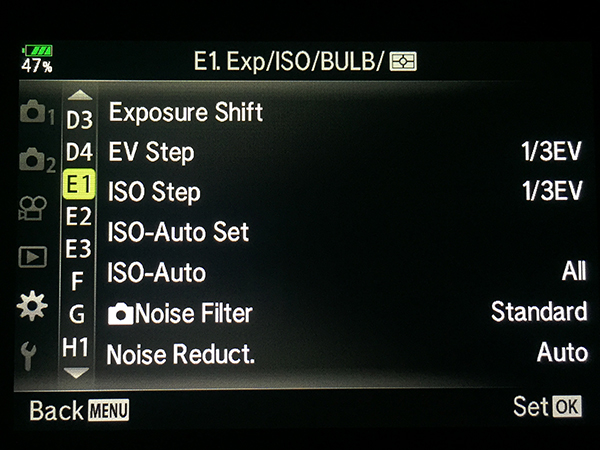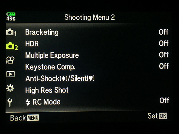 Olympus OM-D E-M1 Specific Menu Settings