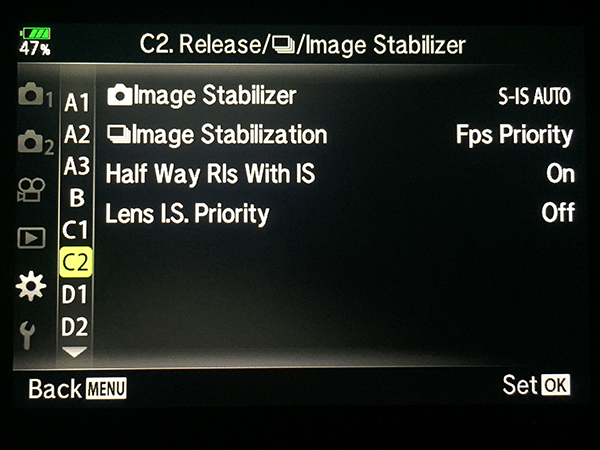 Menu C2: Release / Burst / Image Stabilizer