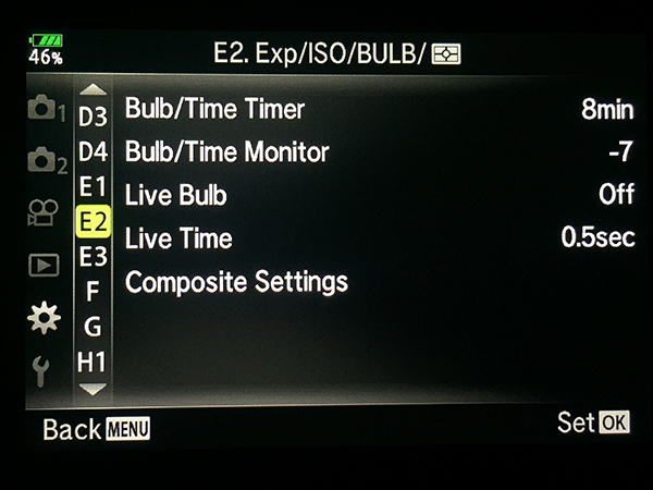 Menu E2: Exp / ISO / Bulb