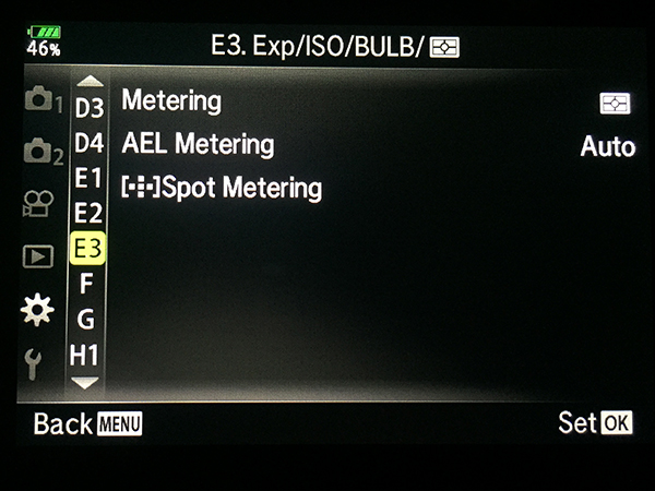 AEL Metering – Default (AUTO) – if you use the AEL function leave this at the default and it will automatically choose the same metering you are currently using.