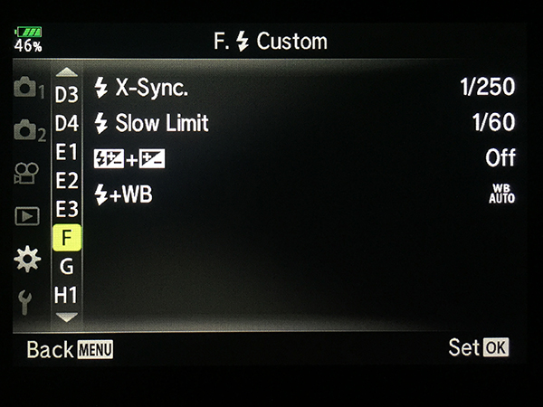 X-Sync – Default (1/250 for E-M1 Mark II) this sets the fastest default Shutter Speed at which the flash can fire.
