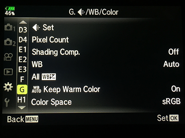 WB – Auto (default) – this sets the default WB mode, you can adjust for certain instances through the quick menu