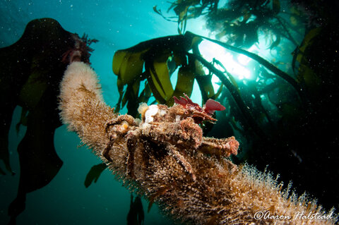 The nutrient rich waters of God’s Pocket (Vancouver Island, British Columbia, Canada) offers some truly amazing and unique diving, full of colors and life I certainly didn’t fully expect. Part of the thrill for me is discovering things I couldn’t have planned for.  Sure, I had a list of things I wanted to see; giant pacific octopus, hooded nudibranchs, warbonnets in a bottle and wolf eels. But, playing tug of war with an GPO who took a quite-strong interest in my strobe, or discovering a type of anemone with miniature versions of itself clinging to its sides, or the wavy motions and sail of the sailfin sculpin; those are all safely cataloged in my internal dive logs, as stories I’ll have to tell in the years to come.