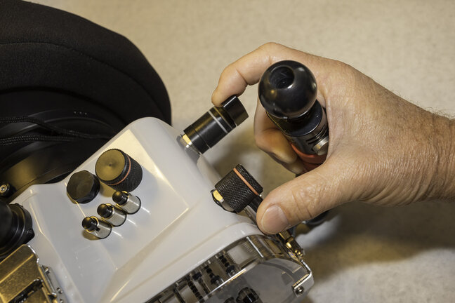 Shortly after digital cameras became standard for underwater photography, most housing manufacturers added an ergonomic control to effortlessly access a button on the back of the camera that you can set through a custom function to engage focus. On my Canon 5D Mark 4 this is marked as the AF-ON button and is one of three buttons together on the upper right corner of the back of the body. It is my understanding that a similar control is available on Nikon. Through the custom menu, I also turn off the shutter release to autofocus and use the AF-ON button exclusively to activate the autofocus. It can be challenging to have the correct feel for the shutter through the housing control and this is only exaggerated in cold water with the addition of gloves. Using this back-button focus technique eliminates (accidentally) shooting a frame when you are trying to focus with the shutter.