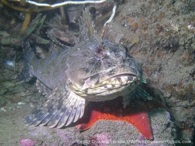 Cabezon on a bat star. SeaLife DC1400 with Sea Dragon Strobe.