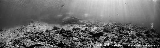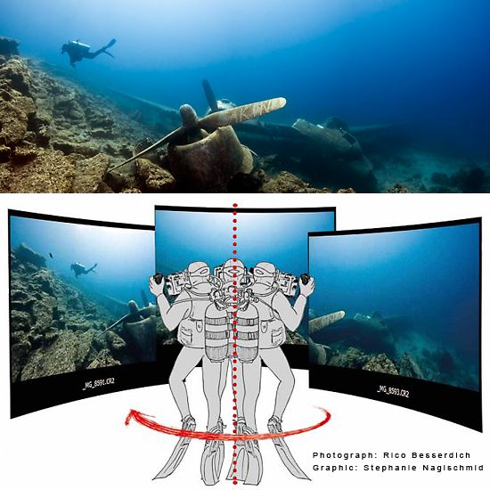 1. First, find yourself a nice subject/scene. Underwater landscapes, reefs, and wrecks have great panorama potential. Staying relatively shallow and working with ambient light brings the most pleasing and natural results.