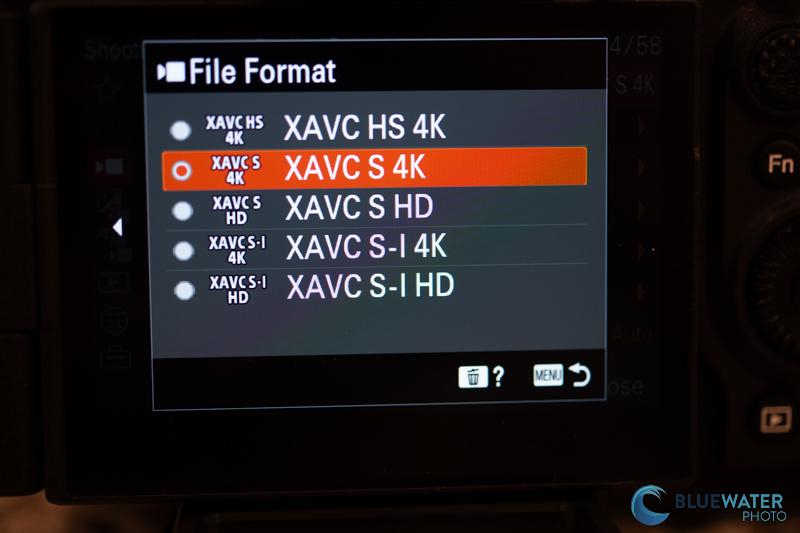 3. XAVC S-I 4K – Ths is the least compressed file type available. It will be easier to playback, but it will also create large file sizes. It features a bit rate of 600M 10bit 4:2:2 at 60fps – that’s a lot of data!