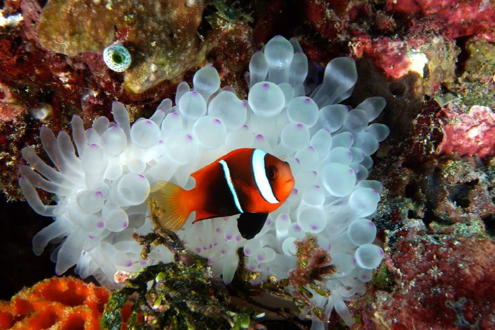 NEX-7 and 30mm lens, F16@1/60, ISO 100, Nauticam NA-NEX7 and macro port 45, 2 Sea & Sea YS-01 strobes, TTL control. Tomato Anemonefish, Wakatobi, Indonesia