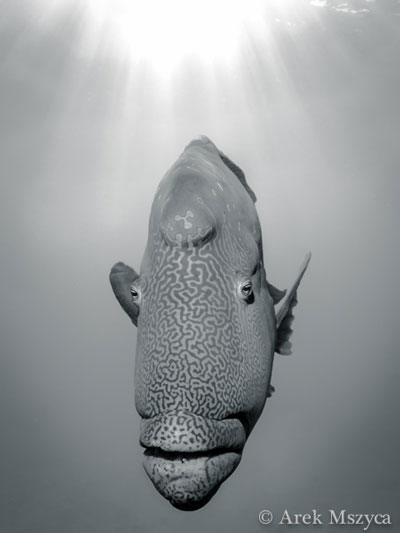 Wally didn’t like this idea at all. He was following us closely through most of the dive. And here is the funny part – the more we ignored him, the closer he was approaching us. Wally was determined to get some attention. At some stage he got right behind Max. I had my wide wet lens ready and took few shots.