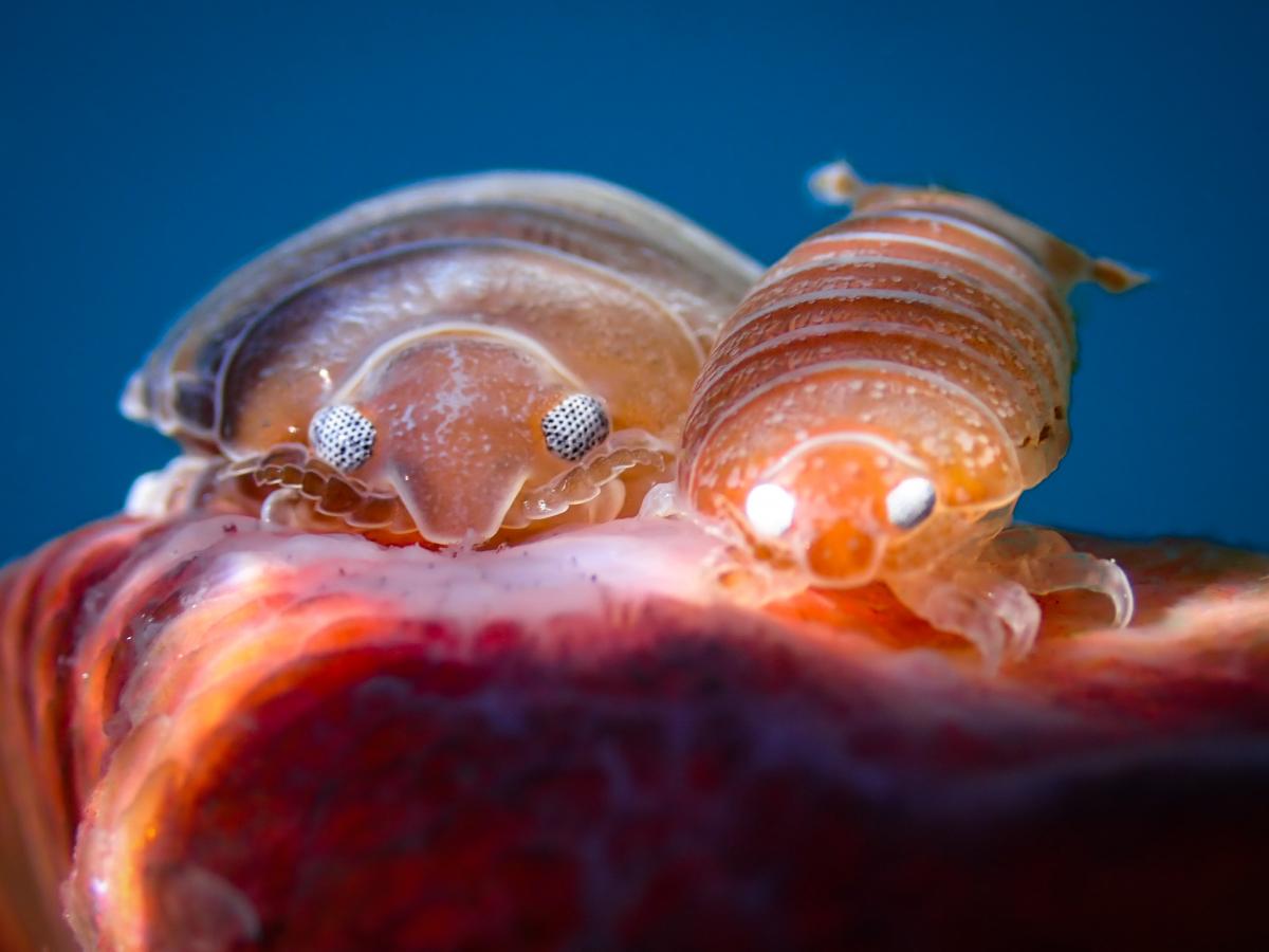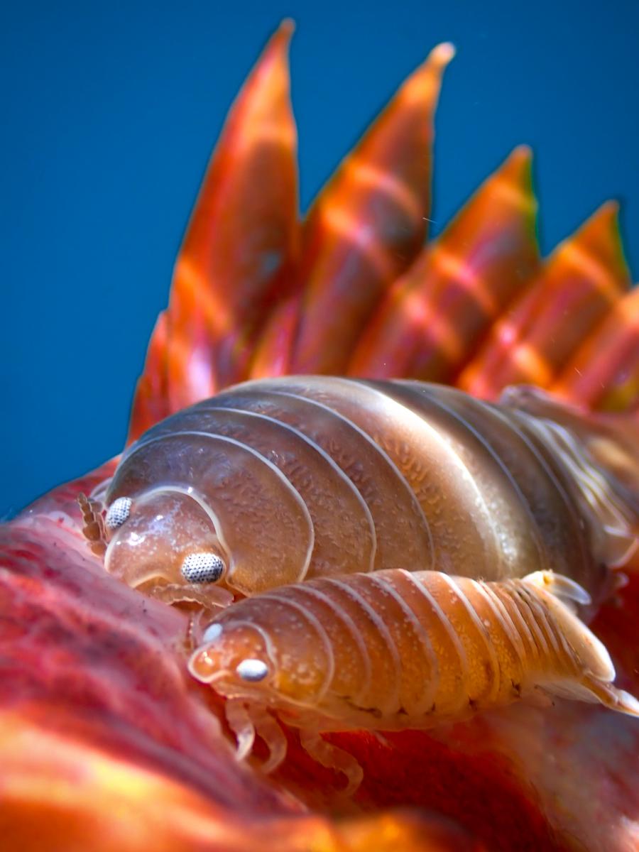 The story behind this photo is actually quite funny. After I bought the camera I was going to the beach in Algarve to film and photograph pretty much everyday, and at the time I was filming a small octopus when I heard someone shouting at me from the nearby cliff. It was a fisherman, and he was asking for help. Apparently his line got caught up in something in the bottom, and he was asking if I could free the line. When I got down I saw this big seabream, entangled in the line and in a rock. It had made such a mess that I was unable to free the line, so I had to cut it. But before I made sure I would remove the hook from the fish. As I grabed the scared seabream I noticed this pair of parasites attached, so I just had to take some quick shots. Being so close to the surface, the light was just right, and I think I got the most out of these two. A happy ending for me and the fish, not so much for the fisherman…