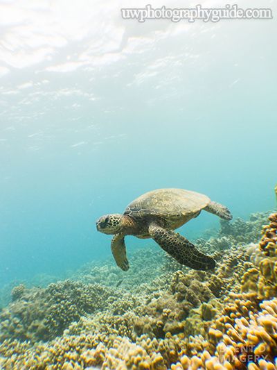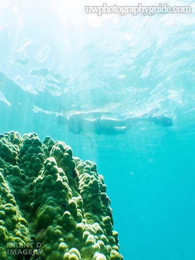 Aside from the fun of capturing images, a major reason to bring along your housing is to grow your photography skills. We learn the most by pushing ourselves into new situations with our photography, so you’ll be challenging yourself in several technical areas. First off, you’ll be shooting exclusively with ambient light. As long as you’re in shallow waters you can get some excellent results, with images full of color and good contrast. You don’t want to shoot any deeper than 15 or 20ft with ambient light, so more of your breath on each dive can be spent finding an image instead of swimming up or down. When shooting with ambient light you’ll need to pay attention to the angle of the sun and the shadows it creates, usually shooting with the sun behind you. On the other hand, to create a silhouette you need to shoot into the sun, preferably with a higher aperture to create sun rays, and faster shutter to freeze those rays in the water. Reflections are also a great way to challenge your photo skills and bring a whole new element to your portfolio.