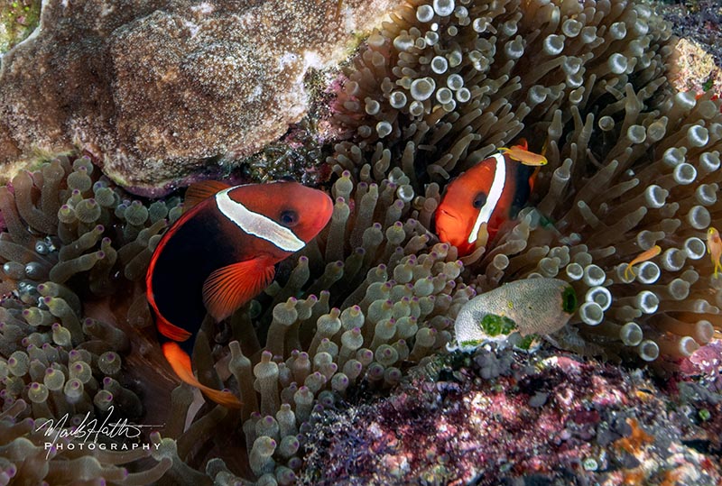 The results were liberating! The cantilevered one kilo lead weight held my kit horizontally in the saltwater and the slightly negative buoyancy enabled easy one hand shooting. Finally, I was able to maximize the virtues of the 16-35mm kit shooting everything from manta rays to close focus subjects like anemonefish and a pair of Halimeda ghost pipefish, at 35mm, one handed!