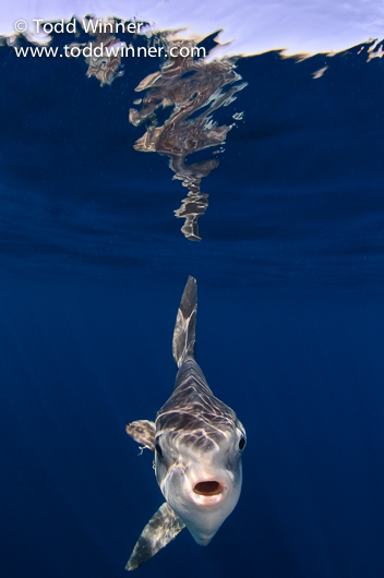8. USE THE SURFACE: Reflections are a great way to enhance an underwater marine life portrait, as it not only shows the viewer exactly where the subject is in the water column, but also adds an artistic touch to the photograph.