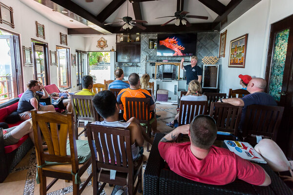 • Day one of the trip: Arrival at the resort will be between 11am-1pm from Manila hotels. Rooms will be available for check-in between 12pm and 2pm. While waiting for rooms to become available, guests can have lunch (runs from 12-2), unpack their camera gear in the camera room, or relax in the common areas. There are 2 optional afternoon dives the day of arrival, which can take place as soon as 4 guests are ready for a dive (4 divers per boat).