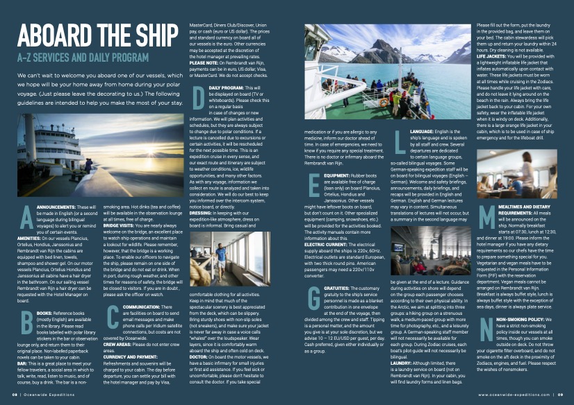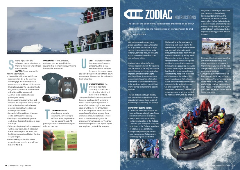 - All shore excursions and activities throughout the voyage by Zodiac.
