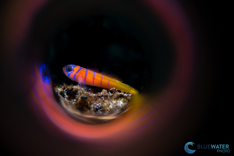 (Right) The same signal blenny photographed with a