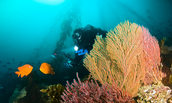 Keep the eyes of the person in focus. Talk about communication and hand signals before hand. Expect that it will take a couple of dives to work out all of the hand signals. Don’t shoot bubbles. communicate ahead of time about your model possibly holding their breath for a moment during a shot. Tell the model not to look at the camera, of course they need to occasionally glance at the camera to see your hand signals. Check their equipment for dangling hoses that might not look great in a photo. Skin tones of a model usually look best using a strobe at between 5000-5500K. The best model is someone you know well, ideally a spouse who will model for hours without complaining or asking for any money. Shots in darker water with a model holding a bright dive light or HID light can have a nice dramatic look. And last, I’ll say it again, discuss your goals & hand signals ahead of time, before each dive, with your dive buddy or model to make the most of the dive.