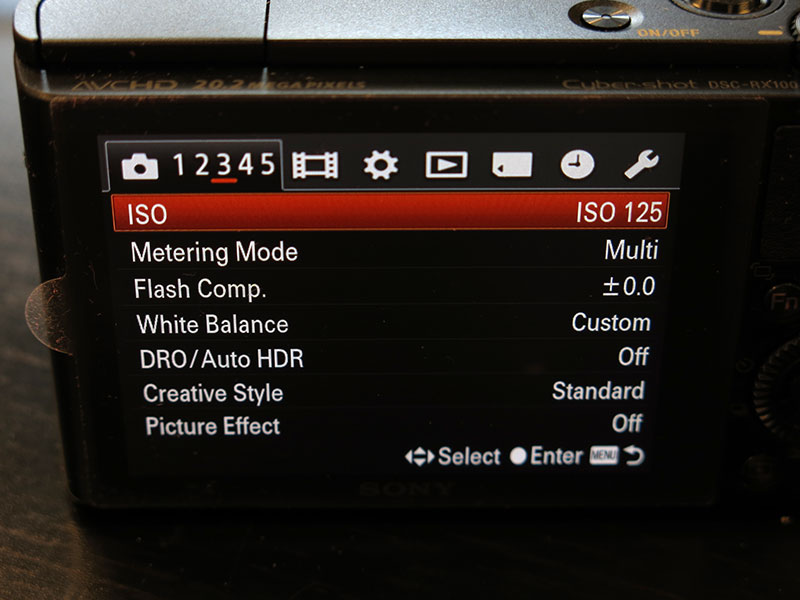 ISO – (Menu – Camera 3 – [ISO] ) – 100